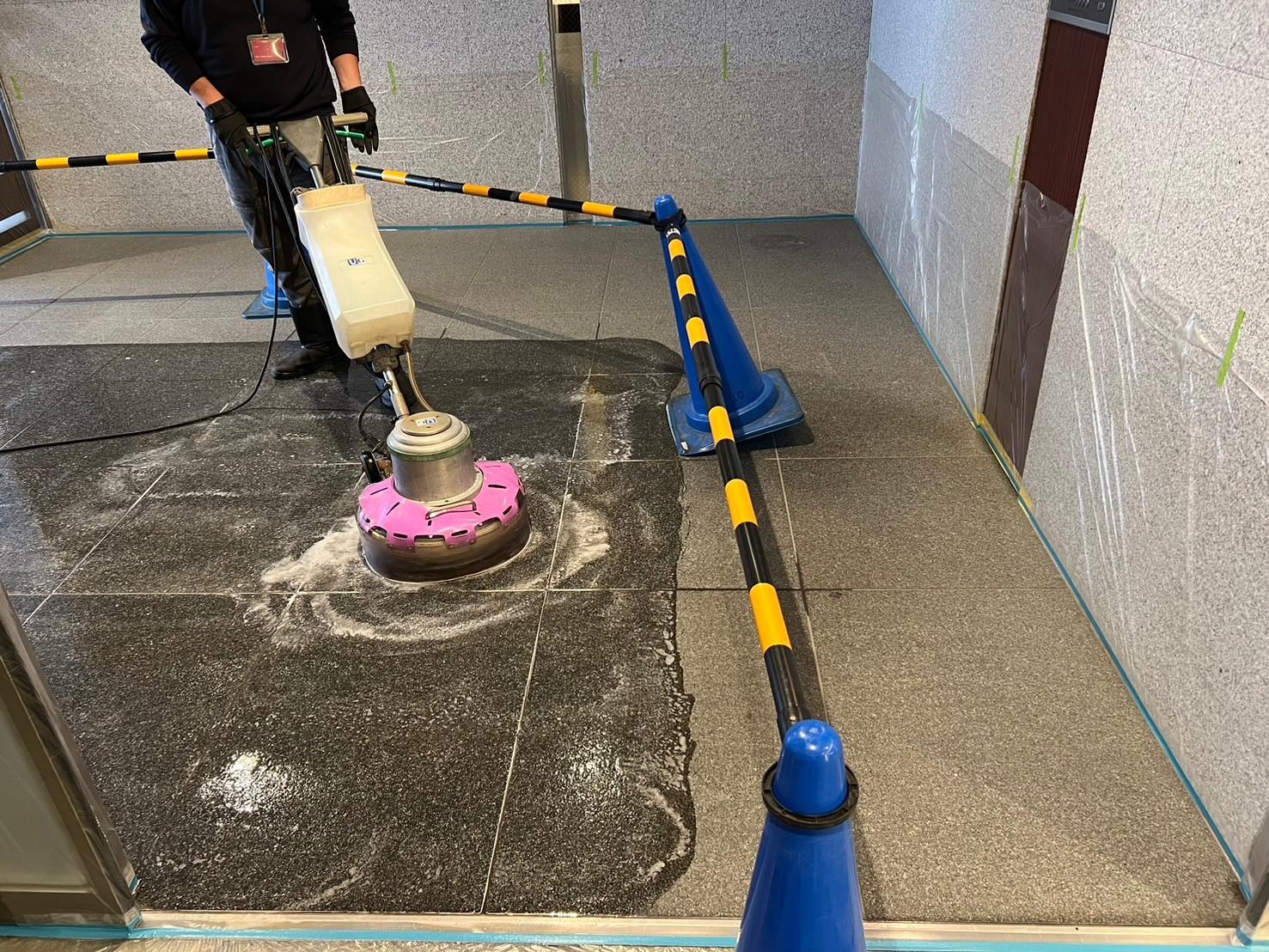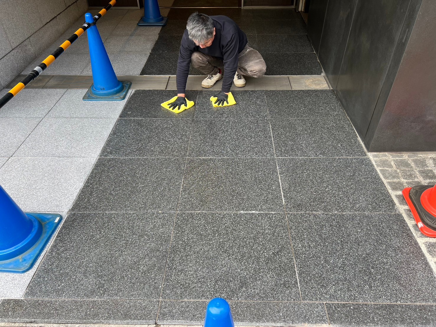 マンションや店舗のエントランスに使用されている御影石。高級感があり美しい反面、気づかないうちにシミや汚れが発生してしまうことがあります。