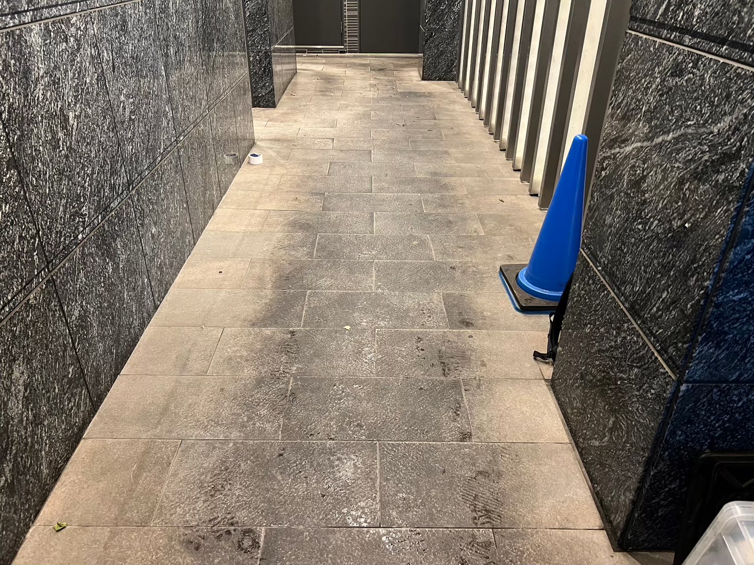 歩行摩耗によってキズつき失われた光沢はダイヤモンド研磨により新築時同様の輝きに再生します。
