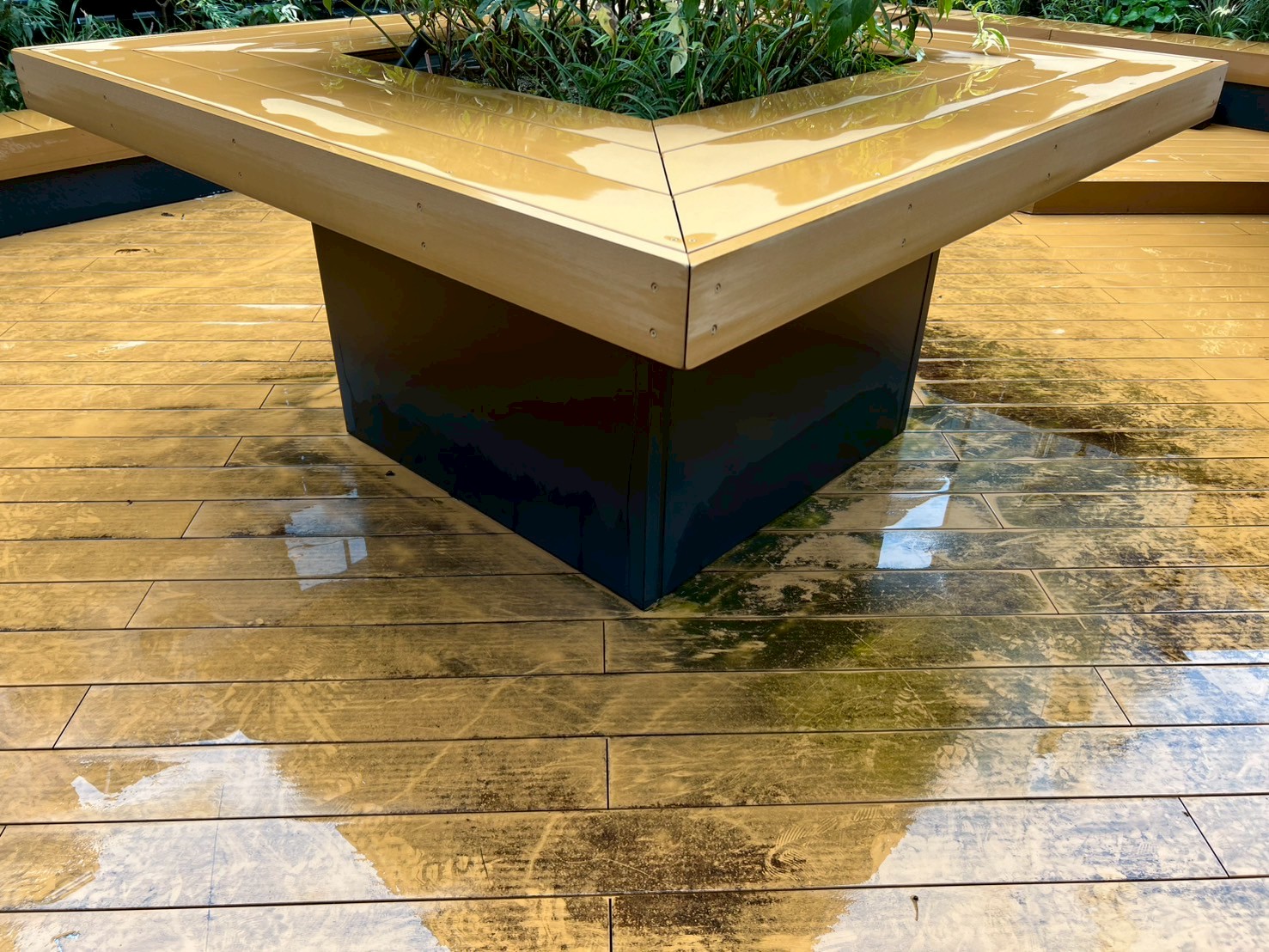 経年により内部に浸透した汚れに対し、特殊薬品を塗布し時間をかけて浸透させることにより汚れを除去します。